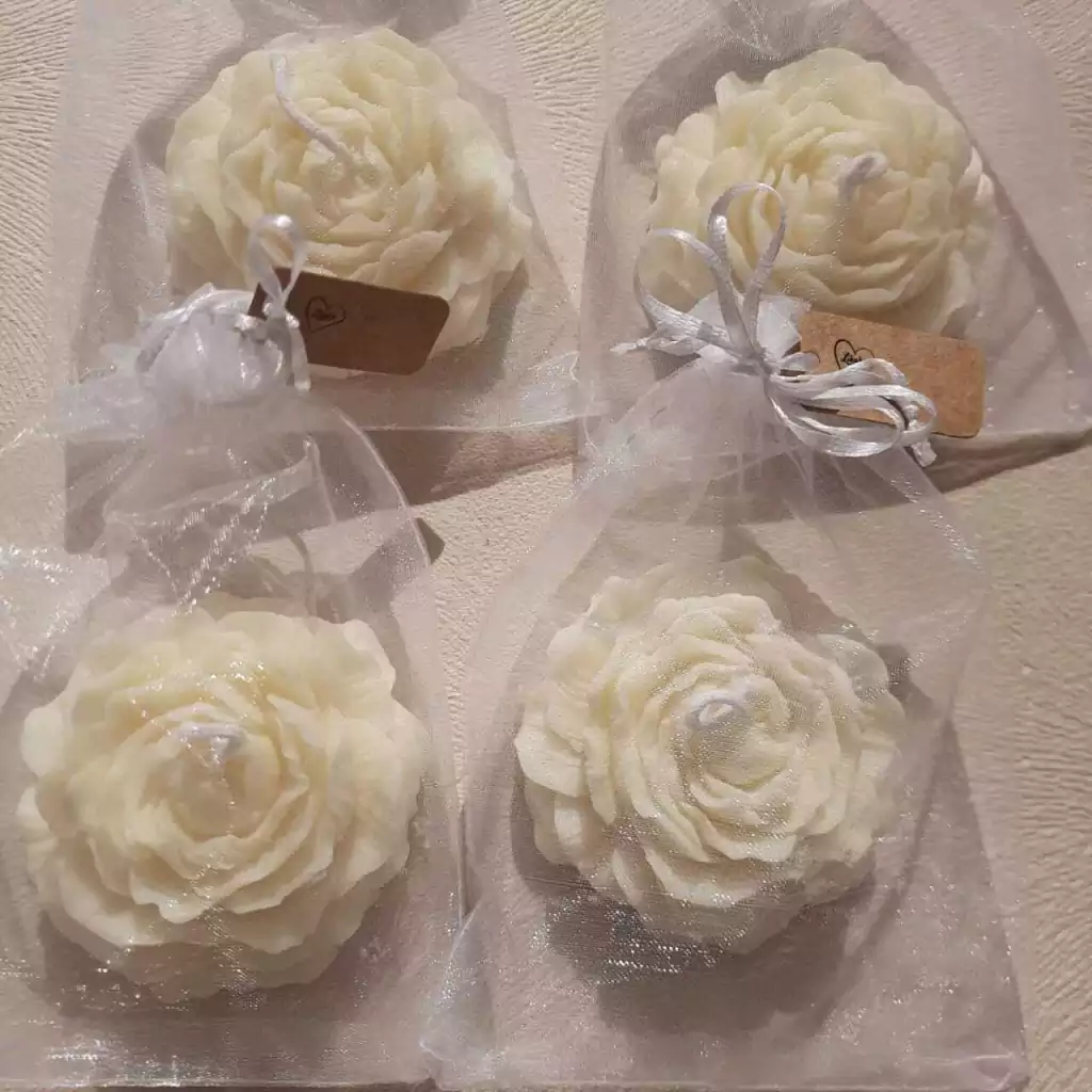 Vela em Flor grande, aproximadamente 100g cada, personalizadas para qualquer ocasião e entregues em bolsinha de organza. Elegante e delicada.