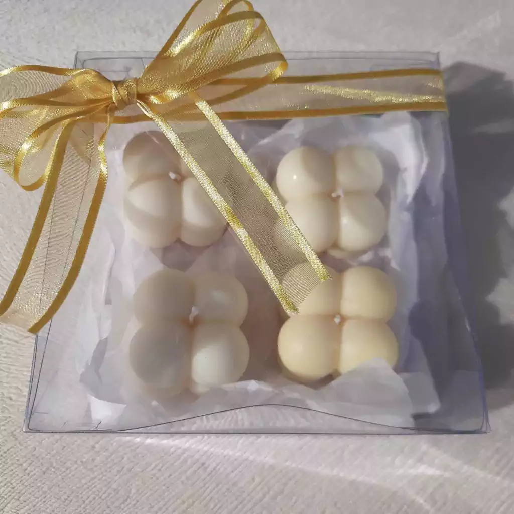 Kit com 4 mini velas bubble, em caixa pronta para presentear