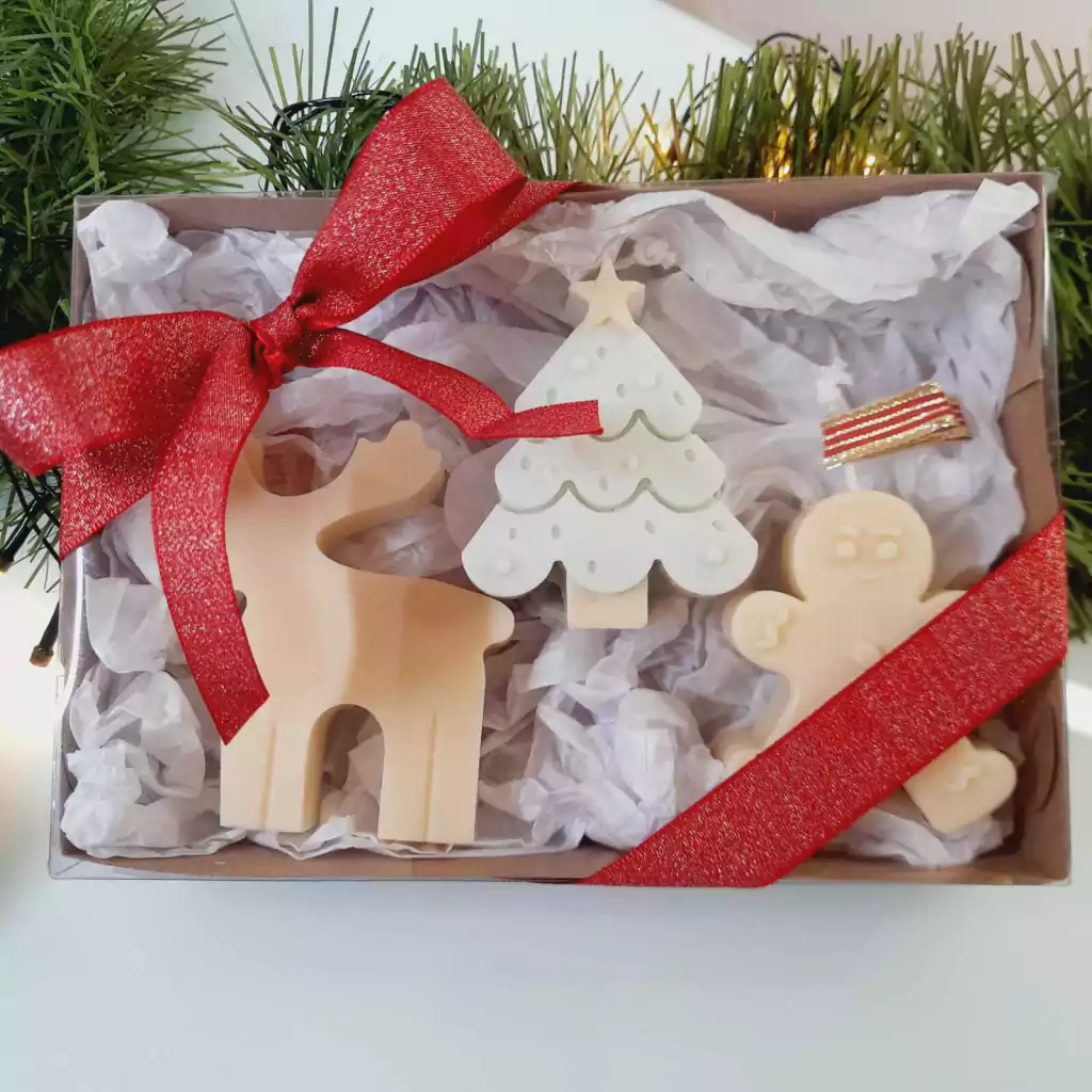 Esse kit contem 3 velinhas aromáticas vegetais para uma experiência aromática incrível de Natal: